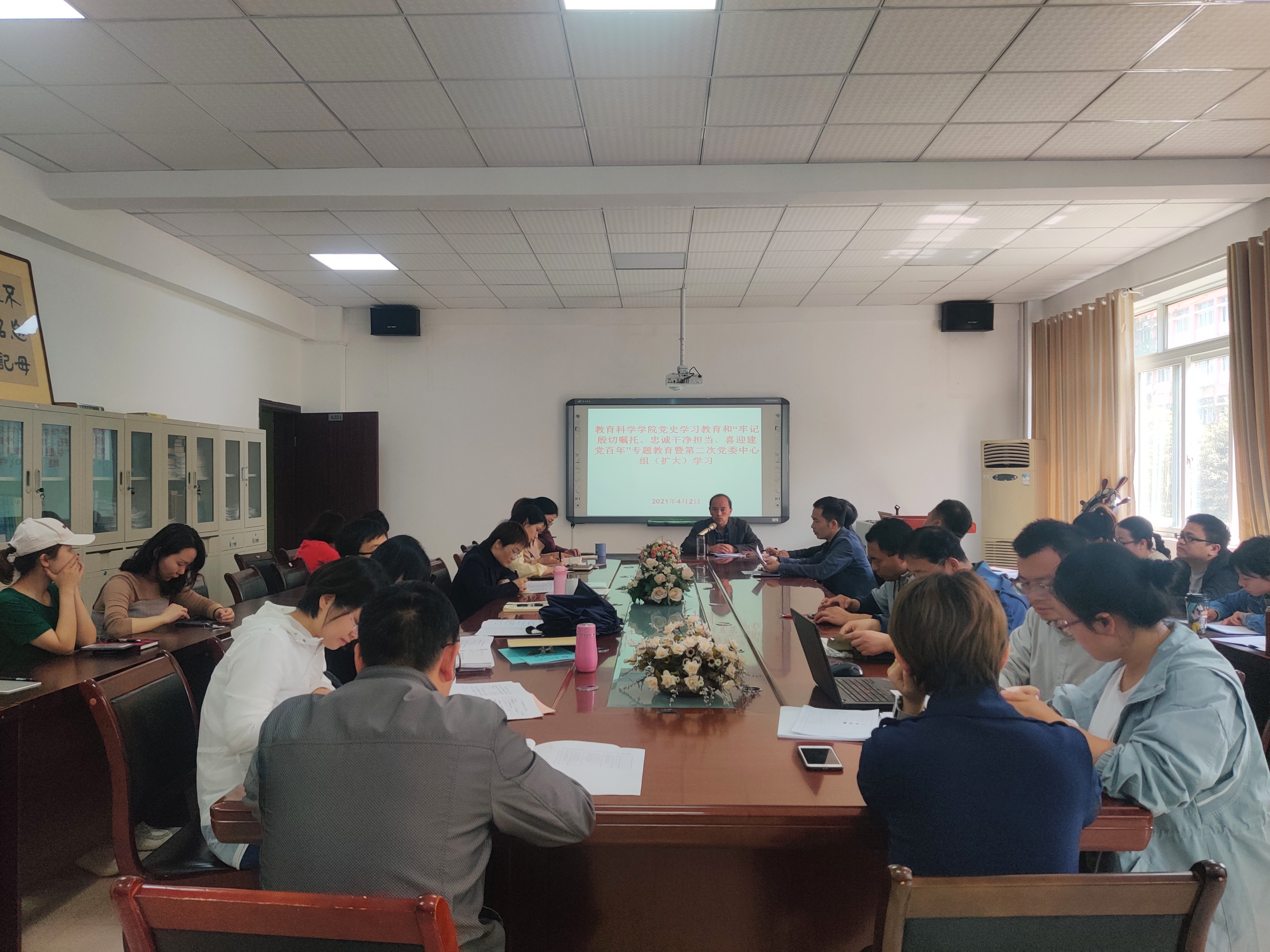 2021年4月2日中午1:00,逸夫楼学院会议室,71886a必赢开展党史学习教育和“牢记殷切嘱托、忠诚干净担当、喜迎建党百年”专题教育动员暨第二次党委中心组(扩大)学习,学院党委书记彭祥友主持,学院党委中心组成员和全体教师党员参加。