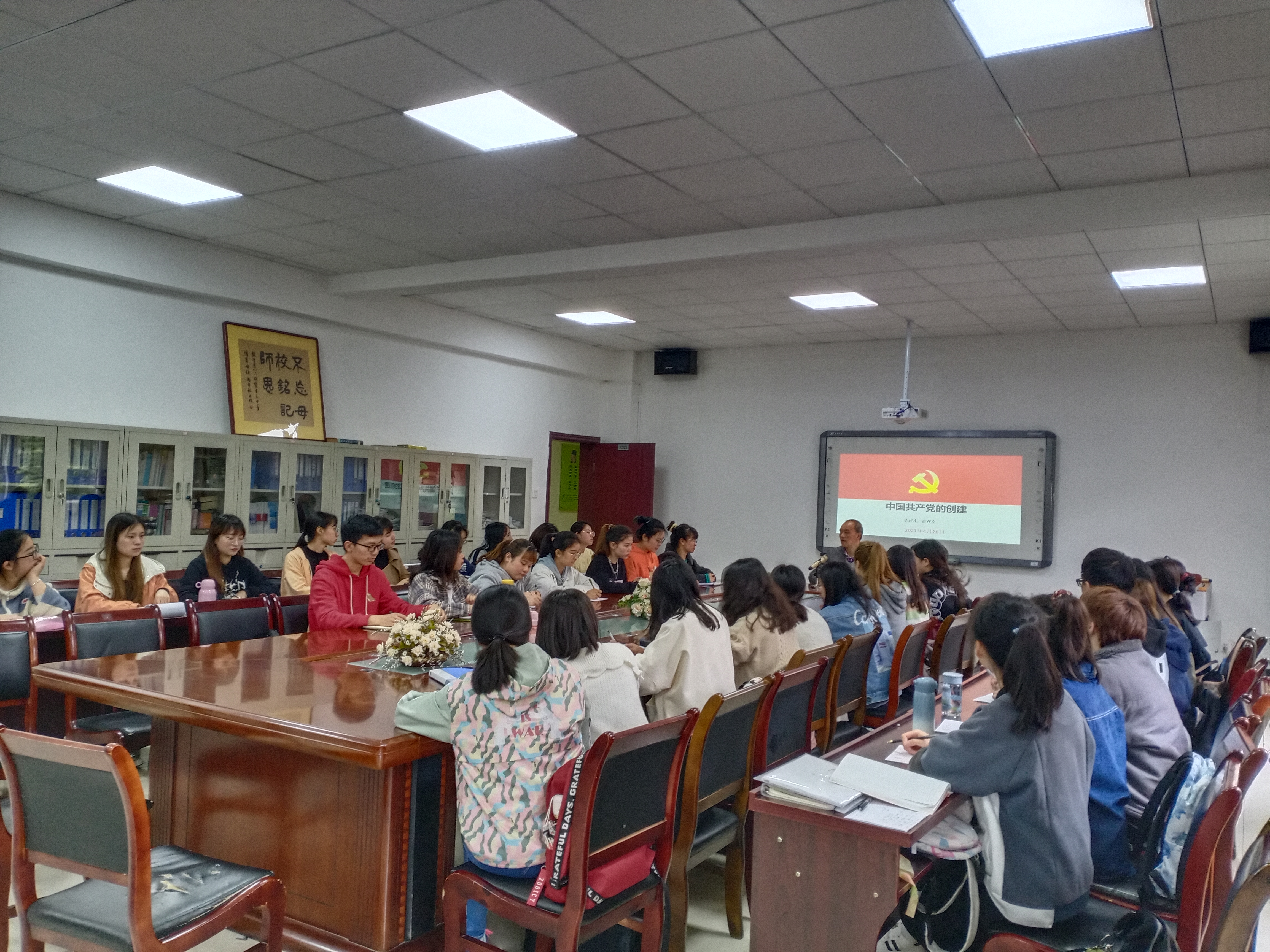 4月28日中午,71886a必赢举行党史学习教育宣讲学习,学院党委书记彭祥友上专题党课,院团委书记张源主持,全院学生入党积极分子发展对象参加集中学习。