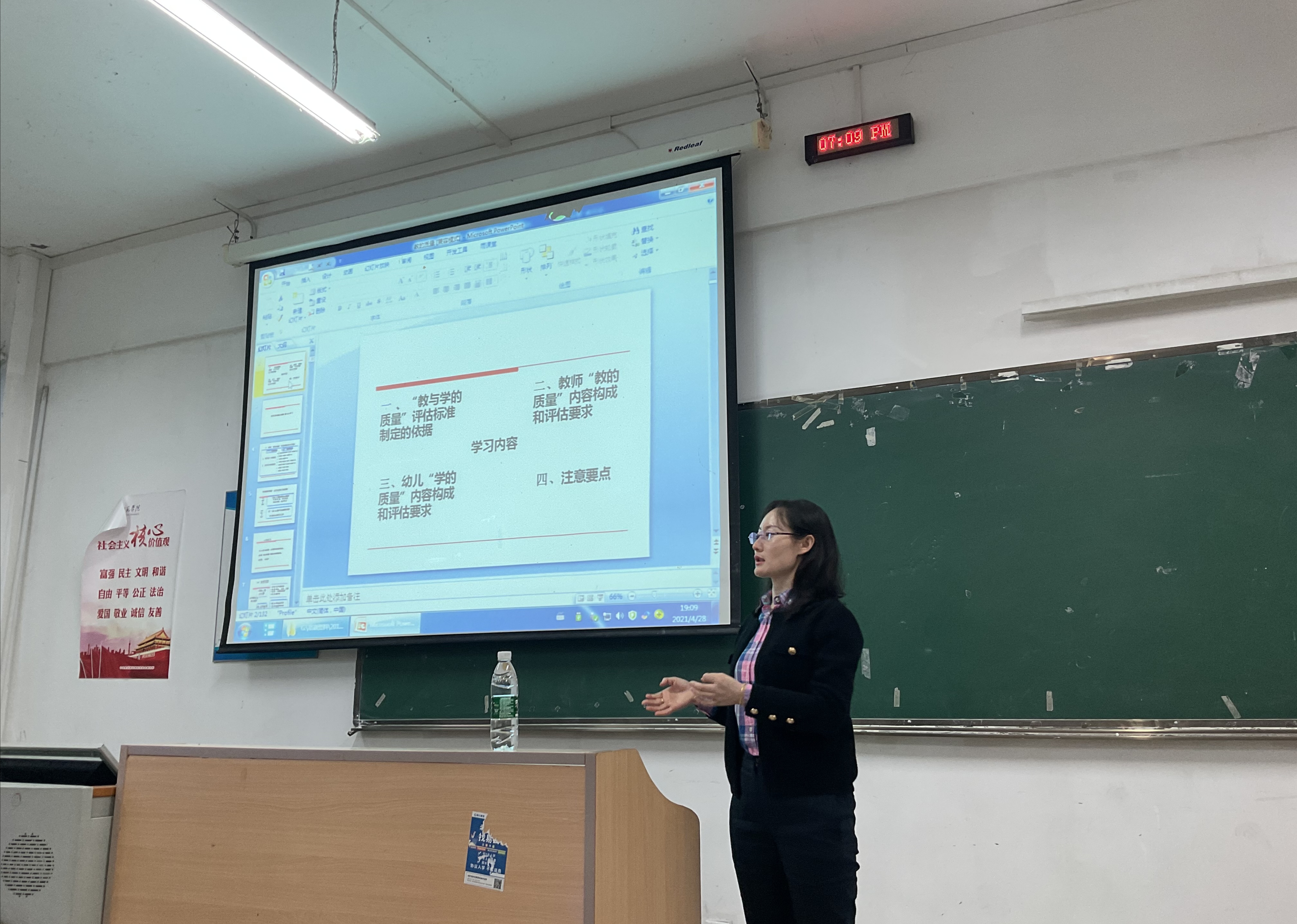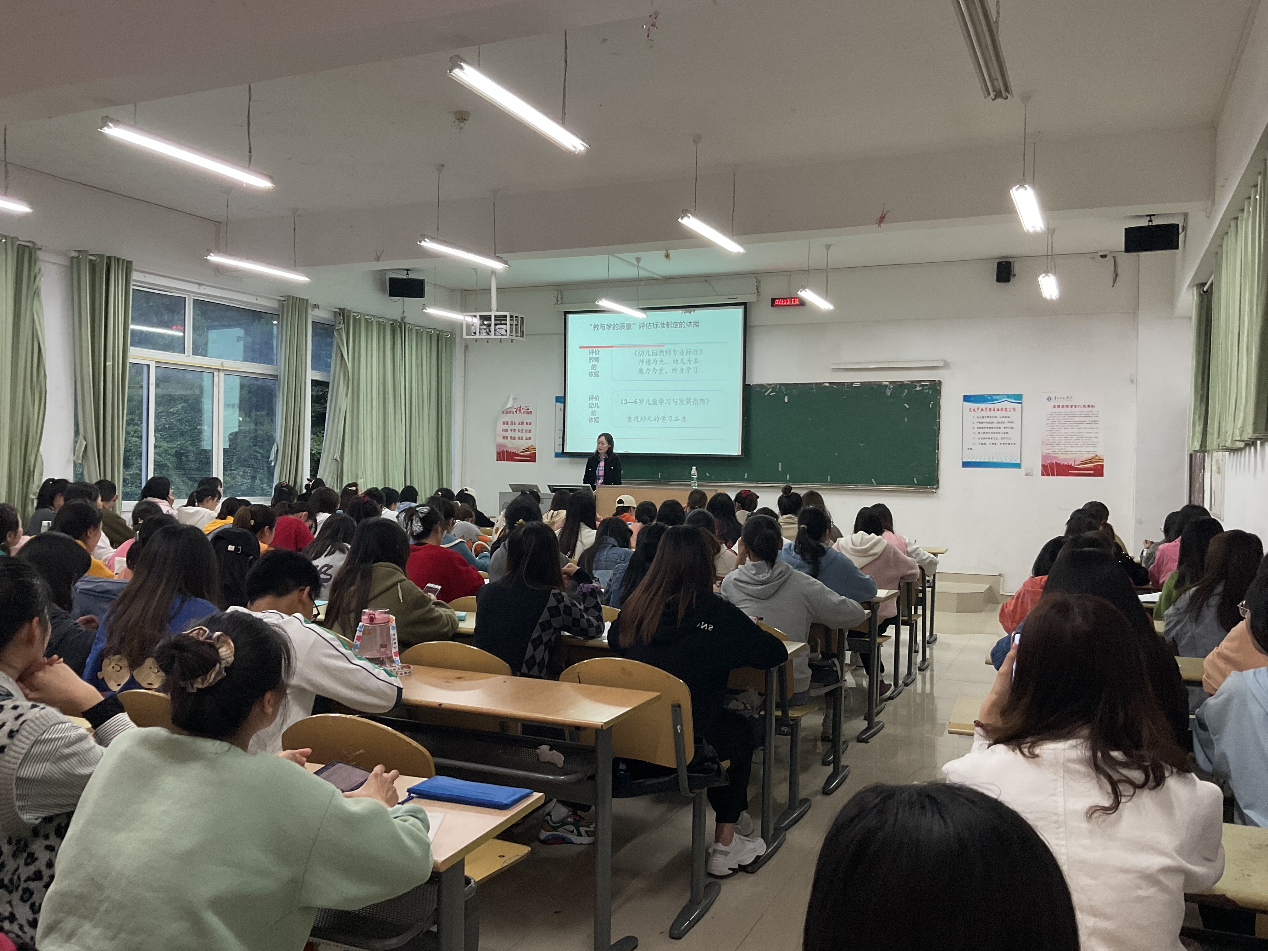 为增强对幼儿园评估相关知识的了解,丰富学生的视野,更好的将理论知识与实践知识结合,2021年4月28日晚上7点,71886a必赢学前教育系邀请了贵阳市教科所王芳芳老师为2018级全体同学在逸夫楼204进行了主题为“贵州省幼儿园分类评估标准”的讲座。