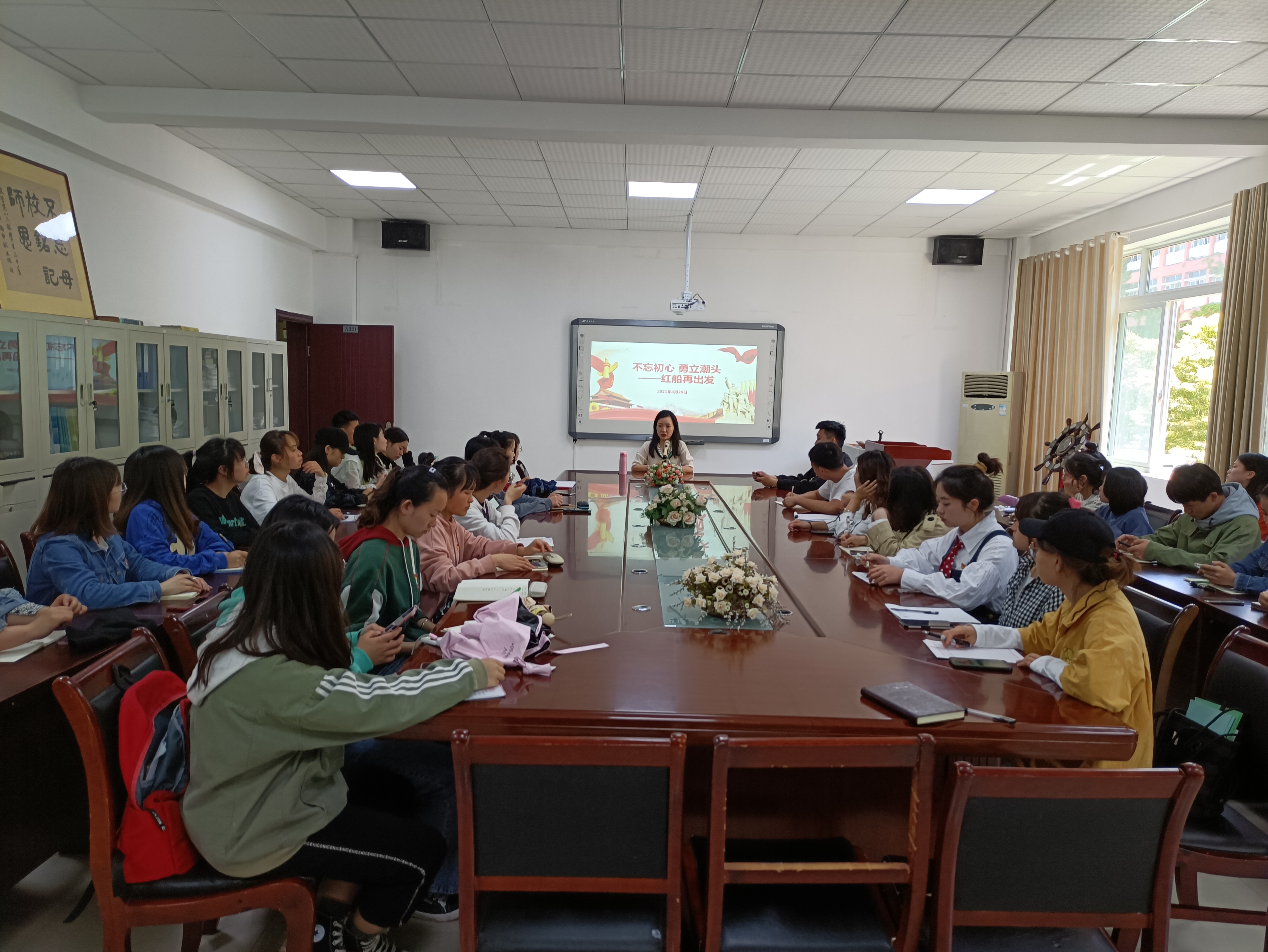 4月29日中午,71886a必赢举行党史学习教育宣讲学习,学院团委书记张源上专题党课,学院学生党支部参加集中学习。