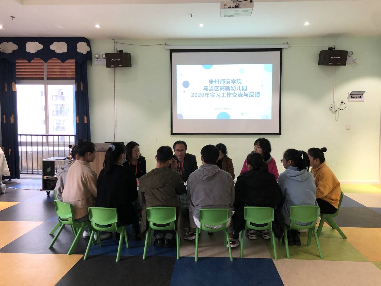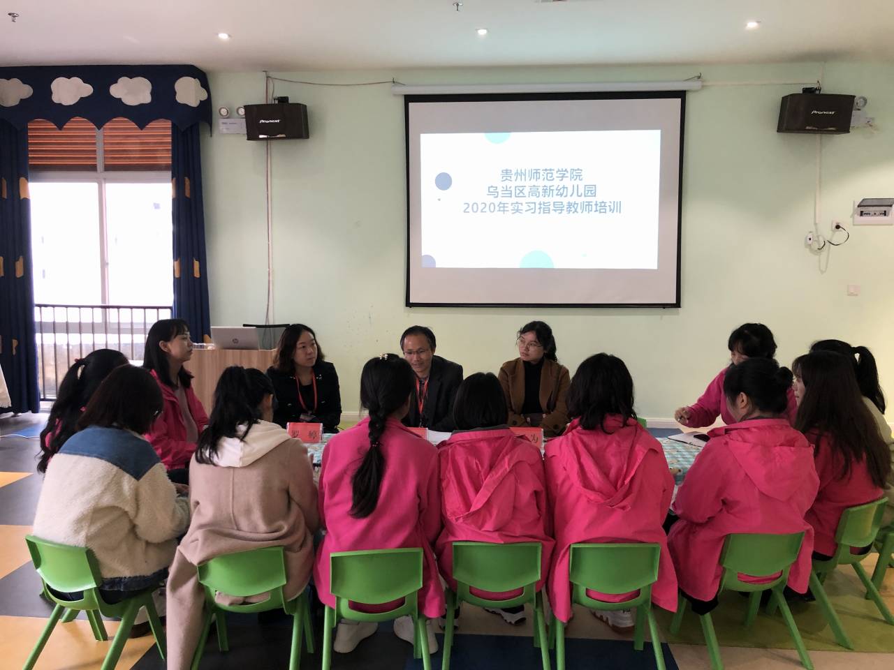 2020年10月15日,为深入了解实习生的工作情况和思想动态,71886a必赢副院长黎平辉、王小为老师、罗婷老师及科研助理吴桂桃到高新幼儿园看望实习生,并出席乌当区高新幼儿园实习指导教师培训会。