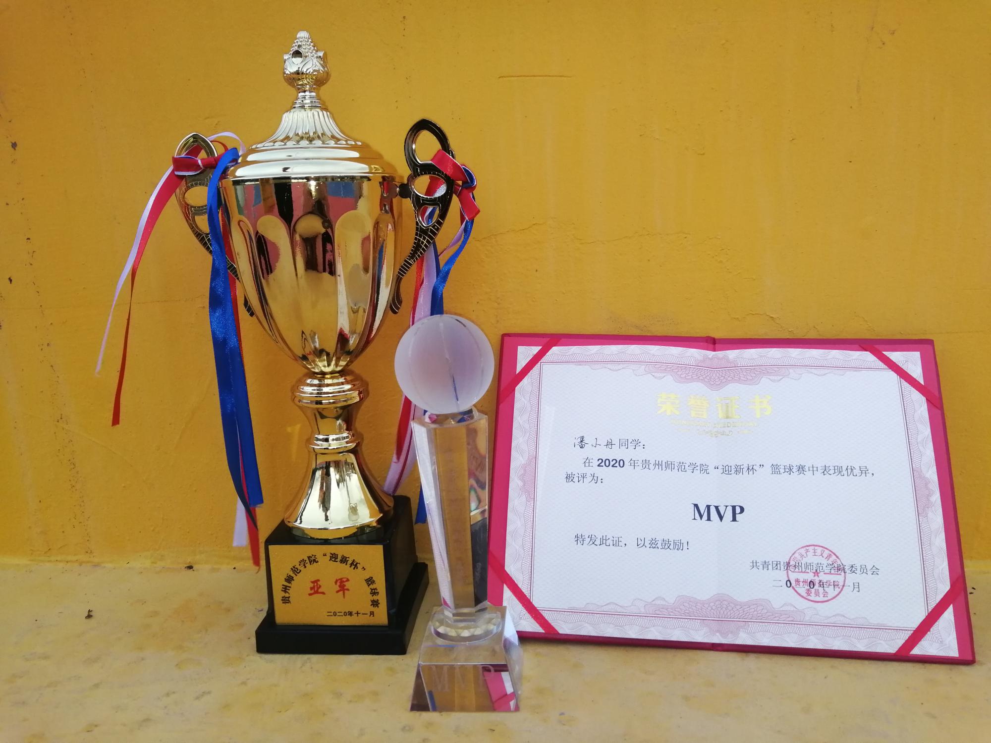 此次比赛刷新我院大球类竞技比赛记录。我院篮球女队荣获“贵州师范学院2020年篮球‘迎新杯’”亚军,我院2020级学前教育的潘小丹同学荣获女子甲组MVP(最佳球员)。我院足球男队荣获“贵州师范学院2020年男子足球‘迎新杯’”季军。