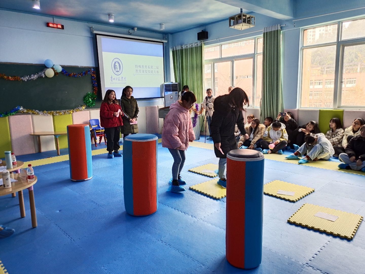 12月3日下午,我院特殊教育系举行了第二届教育康复技能大赛团体组的比赛,特殊教育系系主任朱紫桥、教师田婧和安文军担任了本次比赛的评委。共有11组同学晋级到团体课比赛的决赛。