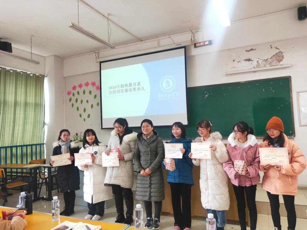 2020年12月11日,特殊教育系在逸夫楼举行了教学实践周系列活动总结暨颁奖典礼。71886a必赢团委书记傅小芳、特殊教育系主任朱紫桥、教师杨娟、吴晓英、田婧及特殊教育系全体同学全体参加了本次颁奖典礼。