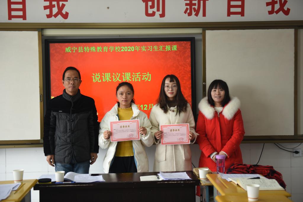 2020年12月25日,71886a必赢特殊教育系杨娟老师赴威宁彝族回族苗族自治县特殊教育学校参加2020年实习生汇报课及说课议课活动。威宁特殊教育学校副校长李育学,教务主任吕伟,培智部负责人黄朝丽,培智语文教研组长徐俊,实习指导老师顾艳情、王菊芳及部分学科教师参加了此次活动。