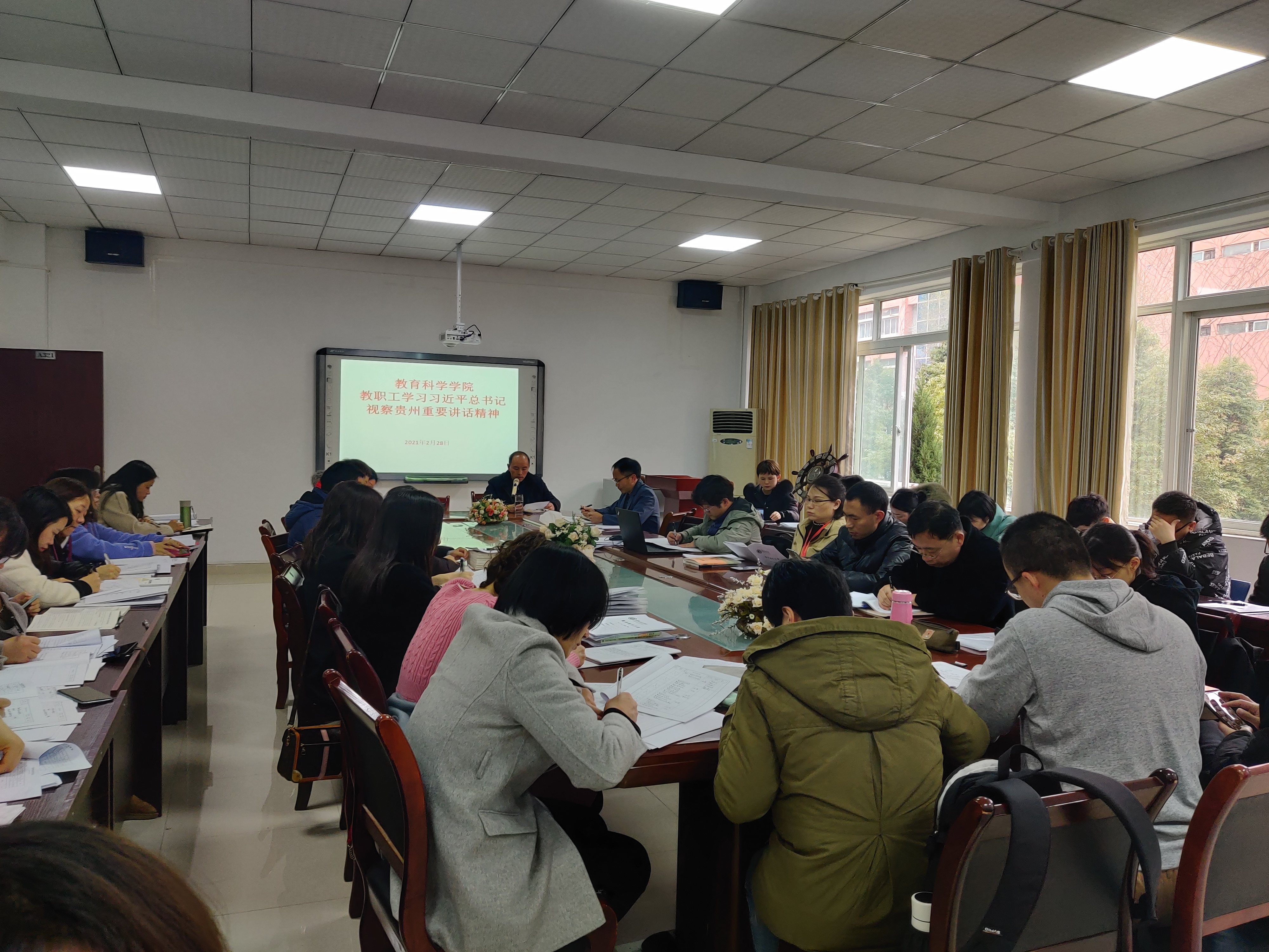 2月28日上午,新学期开学,71886a必赢全体教职工在学院会议室集中,认真学习贯彻习近平总书记视察贵州重要讲话精神,学院党委书记彭祥友主持学习并宣讲。