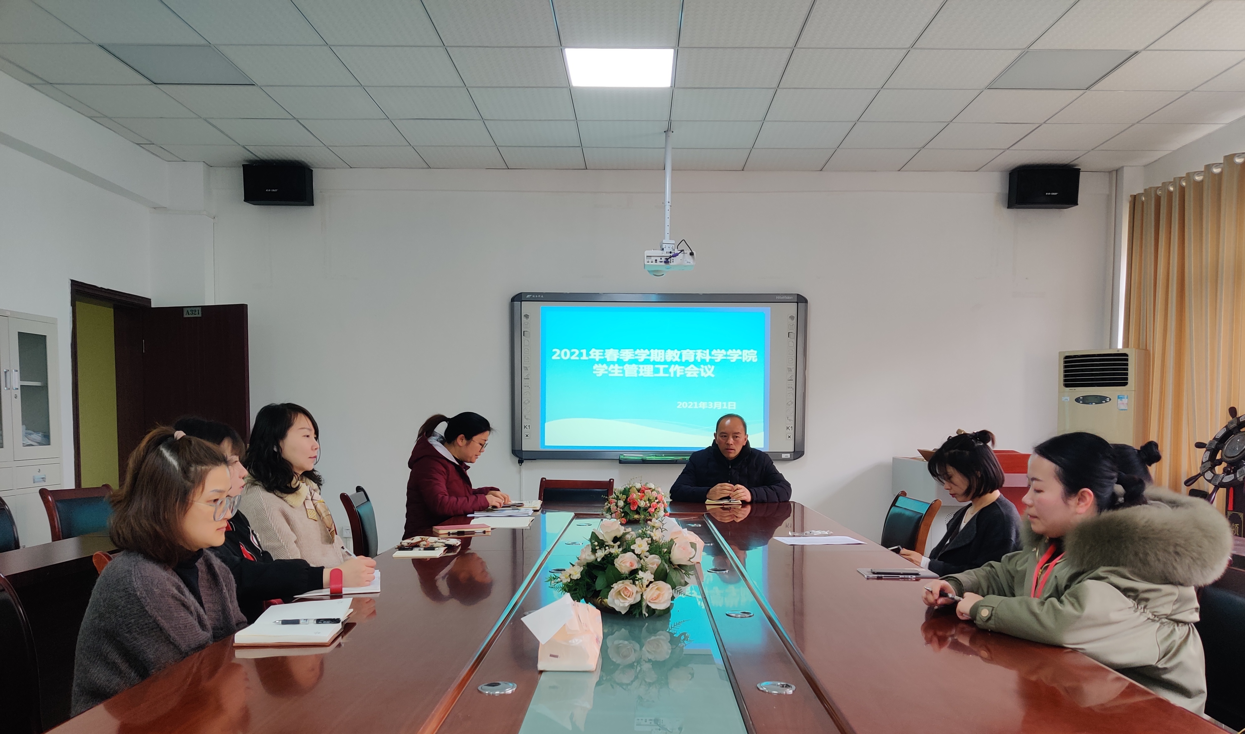 为做好学院学生安全教育和管理工作,2021年3月1日中午,71886a必赢在逸夫楼会议室召开2021年春季学期学生管理工作会议。学院党委书记彭祥友、副书记傅小芳、团委负责人、全体专兼职辅导员参加会议,会议由傅小芳主持。