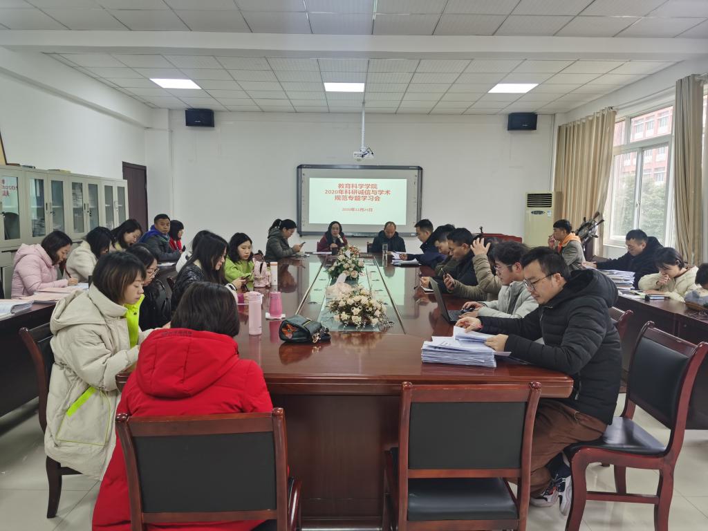 为进一步加强科研伦理和学风建设,维护学术诚信,有效预防学术不端行为,71886a必赢组织全院教职工开展科研诚信与学术规范系列文件的学习活动。2020年12月25日下午,在学院71886a必赢会议室,副院长袁川带领全体教师认真学习了《关于进一步加强科研诚信建设的若干意见科研诚信与学术规范管理文件》、《哲学社会科学科研诚信建设实施办法》等八个文件。