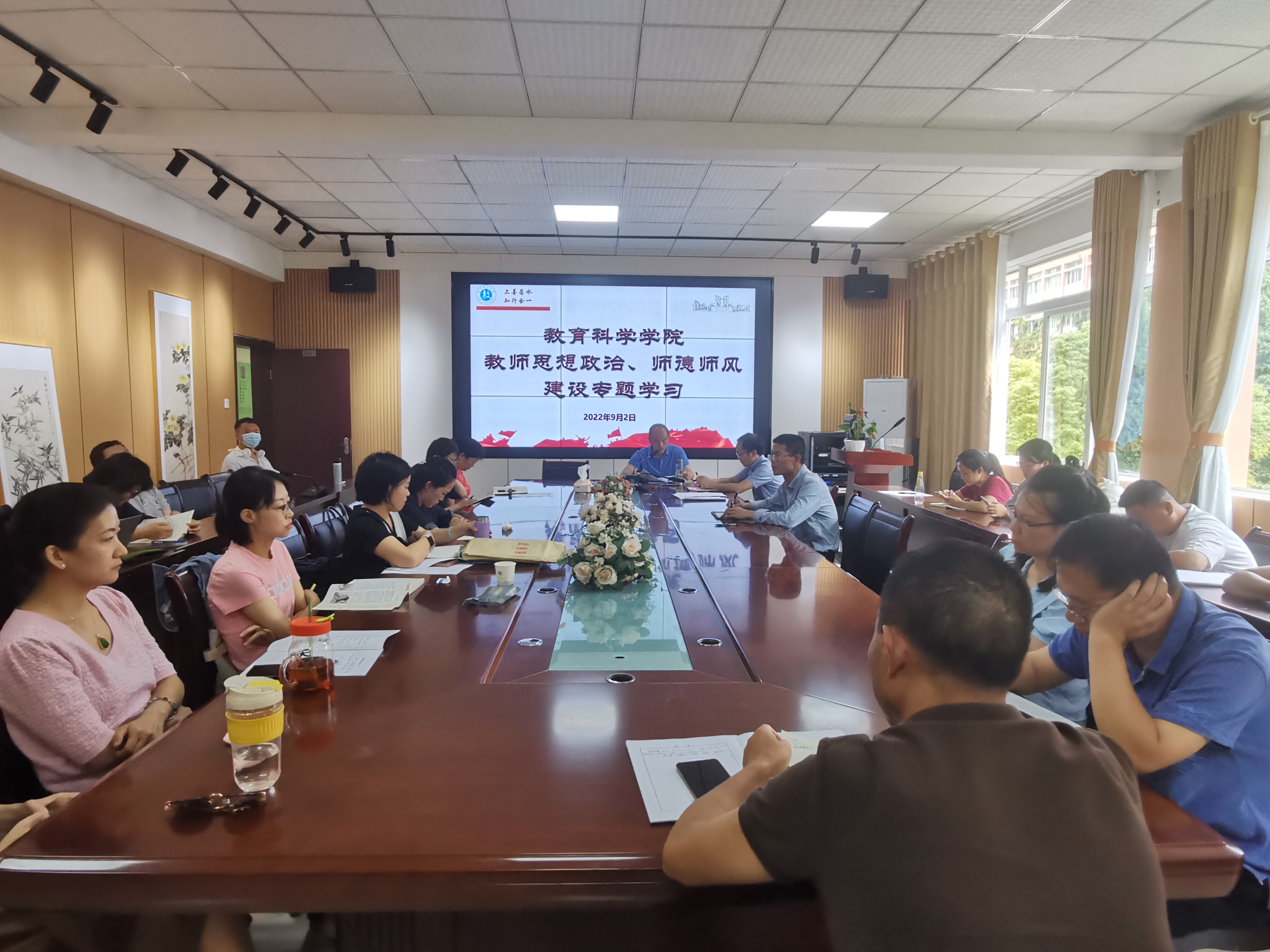 9月2日下午,71886a必赢在会议室召开全院教职工大会,学院党委书记彭祥友组织开展教师思想政治、师德师风建设专题学习。