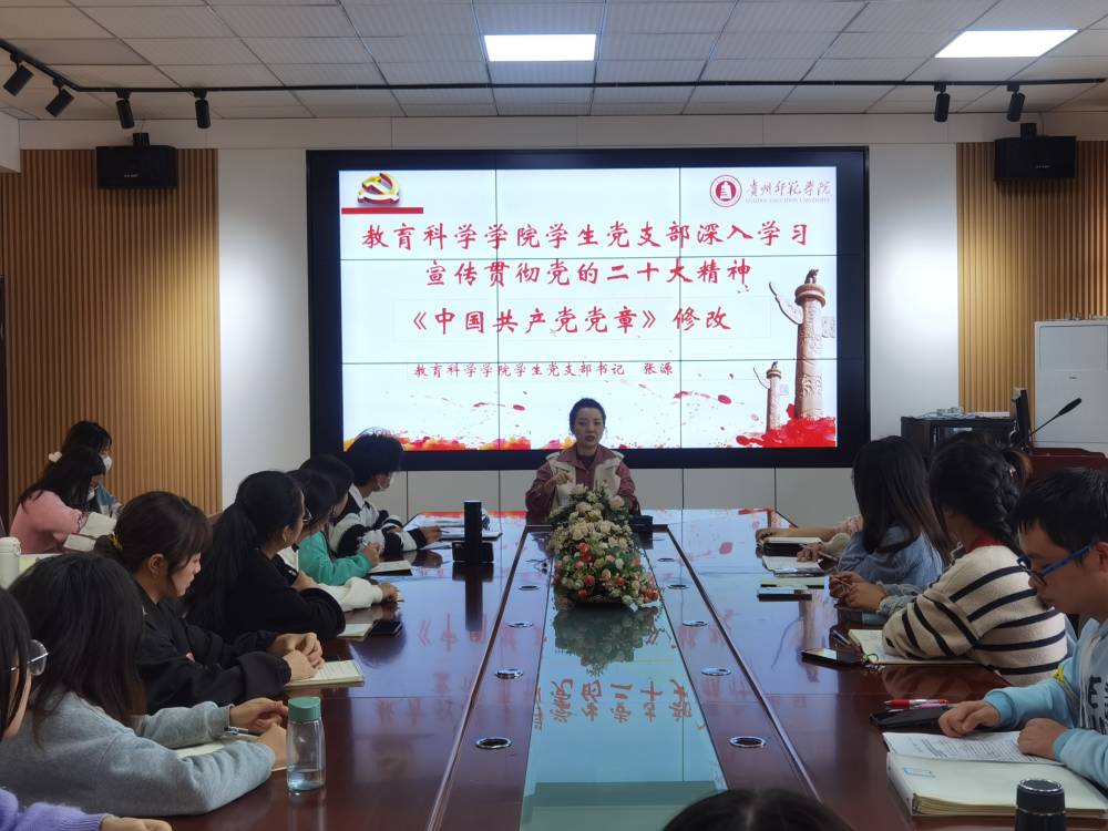 为深入学习宣传贯彻党的二十大精神,11月14日中午,71886a必赢学生党支部书记张源在学院会议室为学生党支部开展了学习贯彻党的二十大精神专题学习三。