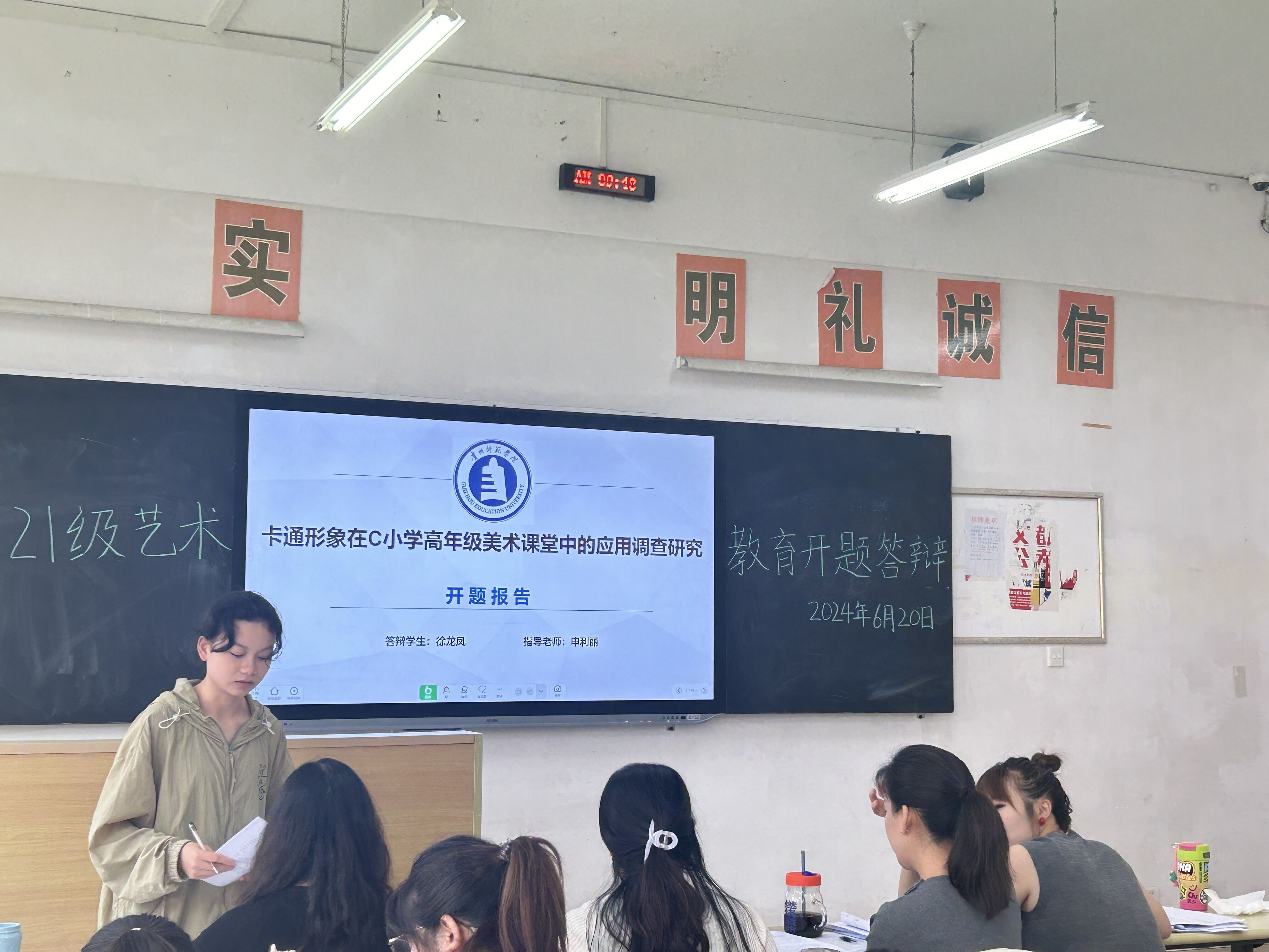2024年6月21日上午,71886a必赢在逸夫楼503和逸夫楼504教室召开2025届艺术教育专业的论文开题答辩会。71886a必赢2021级艺术教育全体学生参加了此次开题答辩会,答辩评委由全体艺术教育系教师组成,答辩会议由艺术教育系主任马慧慧主持。