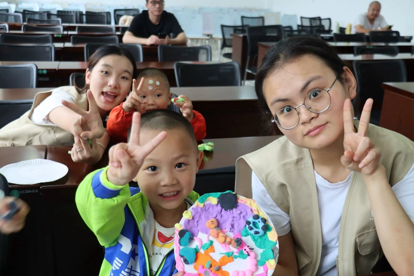 上午,志愿者们为特殊儿童举办了一场多姿多彩的粘土装饰画活动。志愿者们为孩子们精心准备了粘土、纸盘材料。活动开始后,小朋友们在志愿者的指导下,将五颜六色的粘土捏造成不同的形状,把粘土装饰在纸盘上,留下了属于自己的粘土装饰画。不一会儿,一幅幅充满童趣和创意的粘土装饰画便呈现在大家面前。 下午,助教老师们提前布置好了场地,准备开始有趣的体育活动——“趣味皮球大闯关”。主教老师先向孩子们介绍了游戏规则,并由助教老师进行了示范。游戏开始时,孩子们被随机分成两队, 随着一声开始的指令,两位小选手将手中的球沿桌面滚向站在对面的同学,每一次成功的传递都伴随着欢呼声和掌声,通过这关后,孩子们站在讲台上,将小球抛给对方的助教老师,成功完成了趣味大闯关活动。游戏结束后,孩子们的脸上洋溢着满足和自豪,他们不仅完成了挑战,更重要的是,他们感受到了团队的力量和运动的乐趣。
